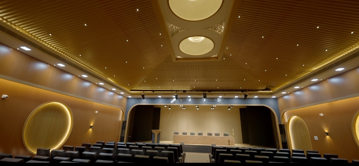 The college boasts of a multi-facility fully air-conditioned auditorium with a seating capacity of 300. It consists of a well equipped stage, attractive lights with a provision for world class acoustic system. Two green rooms, an array of washrooms, ample storage, work and parking space make it a converging point of, academic space, cultural hub and utility. It serves as the venue for various curricular, co-curricular and extra-curricular activities. The doors are thrown open to the local community also for their various needs.