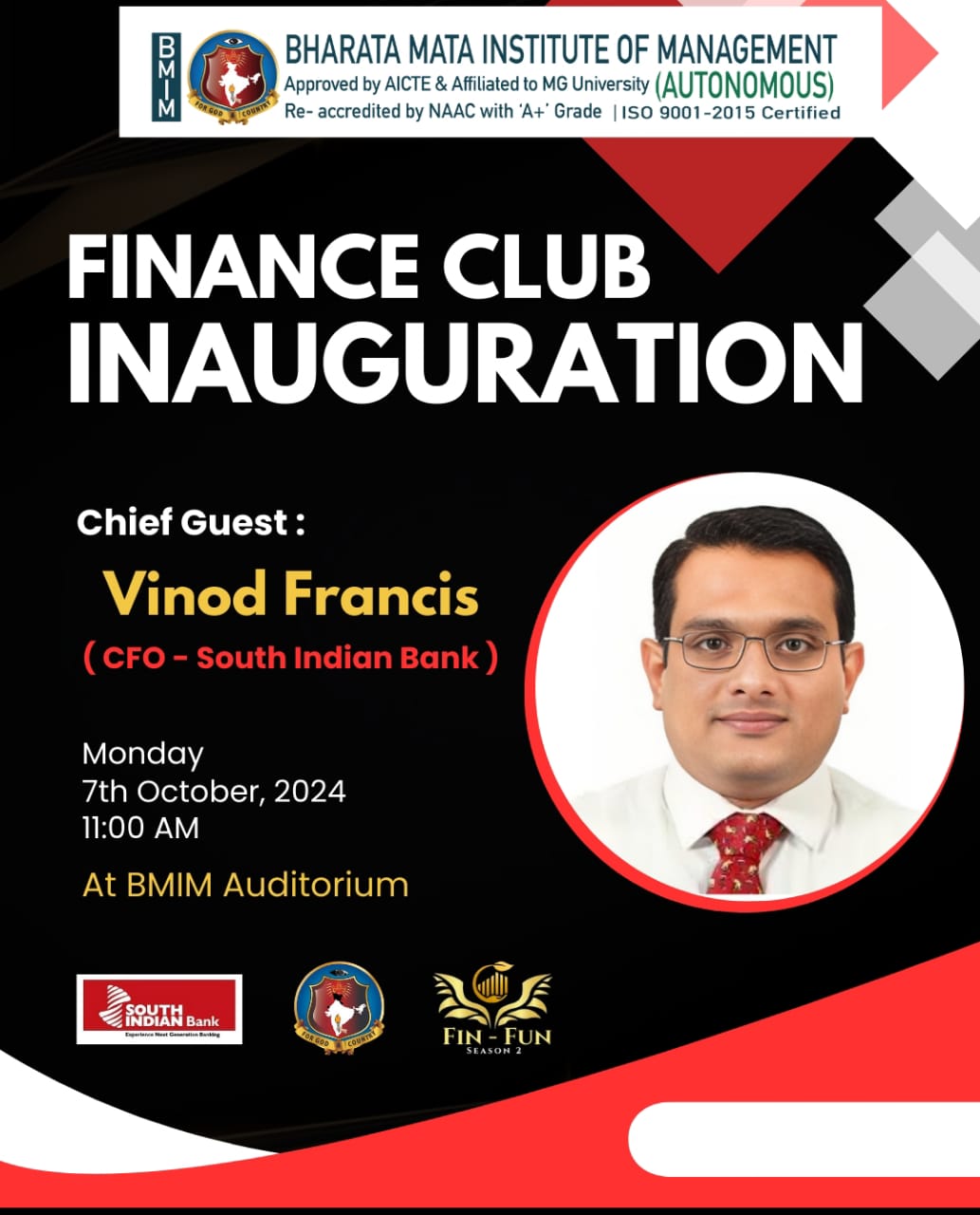 Finance Club Inauguration Chief Guest: Vinod Francis (CFO - South Indian Bank)