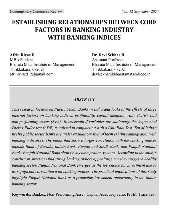 The Commerce department of Cochin College published their Journal. Out of the 10 research papers in that journal, 7 Research papers belonged to BMIM FINANCE STUDENTS.....The Finance students of BMIM MBA BATCH 2022-24, continued the legacy of their Senior Finance Students.